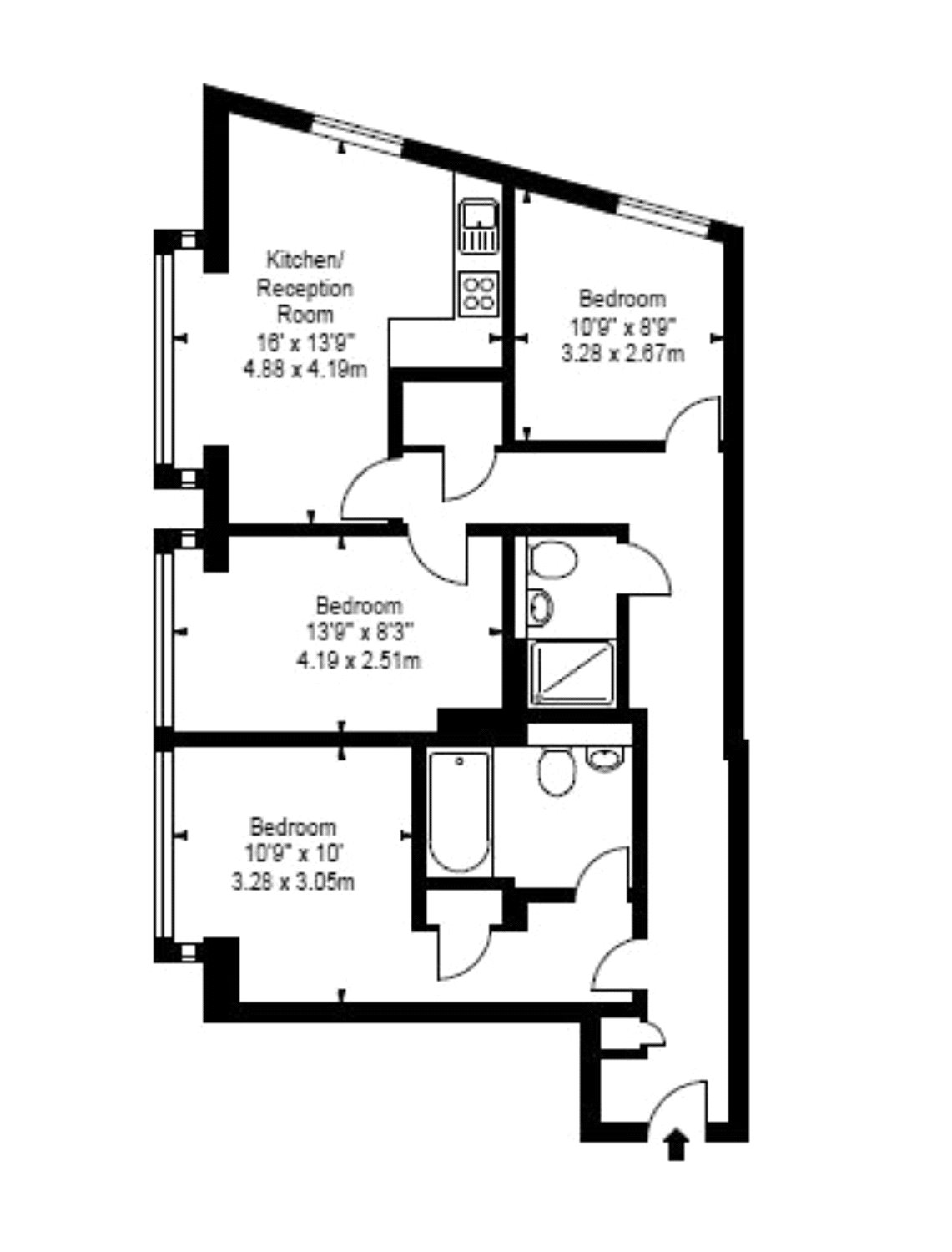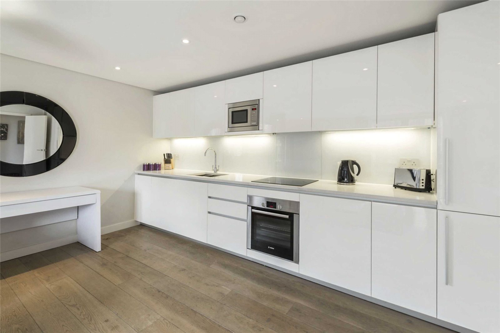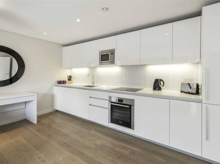 This modern apartment comprises of Reception room, an open plan kitchen, three bedrooms, two bathrooms, and ample storage space.