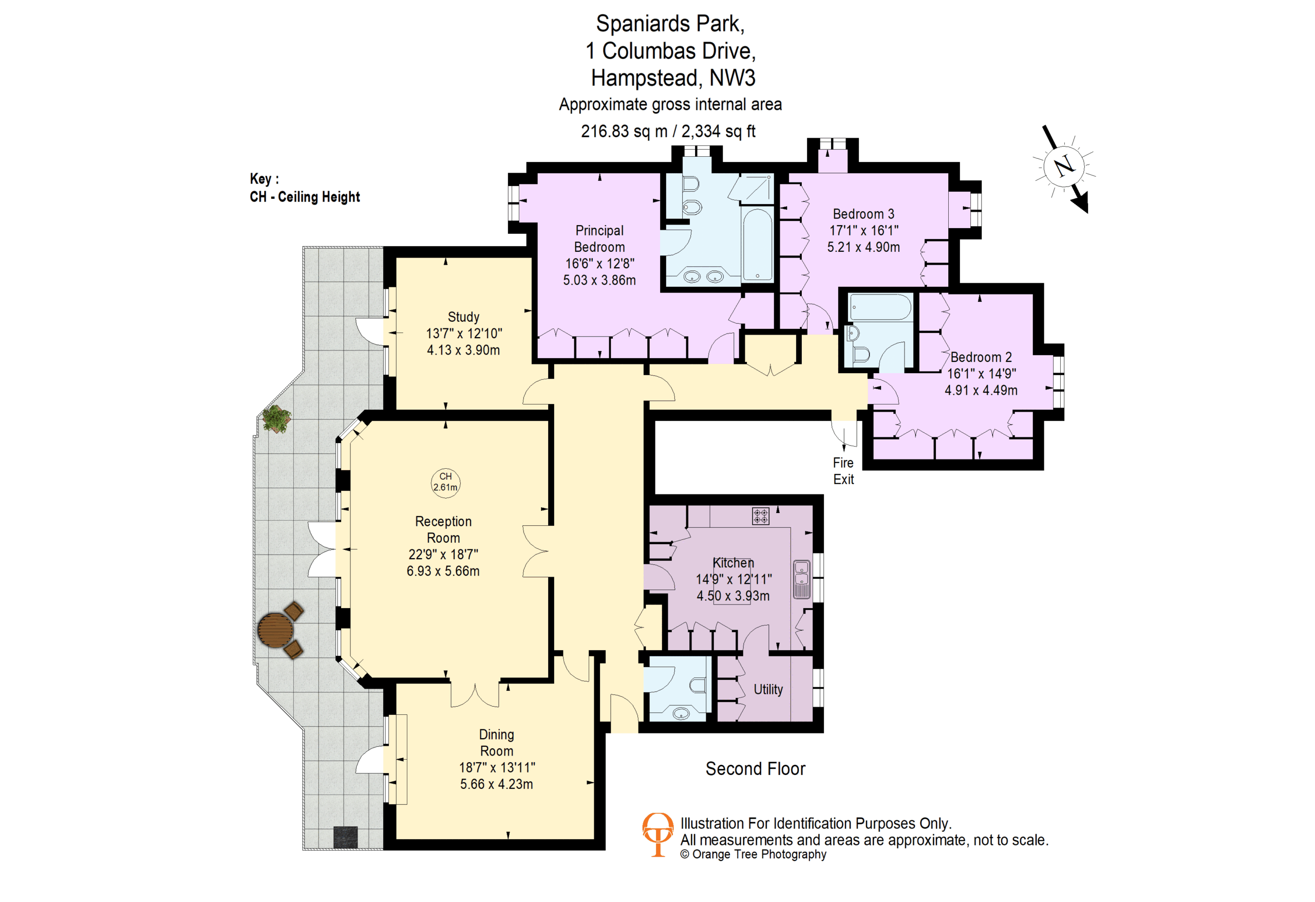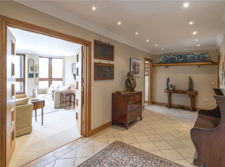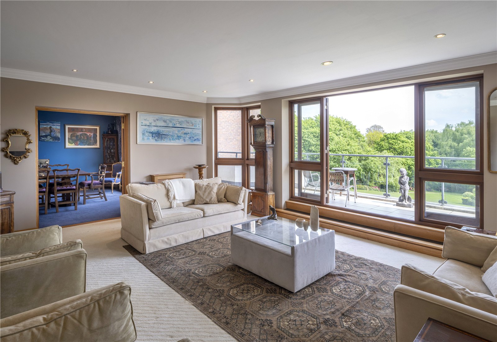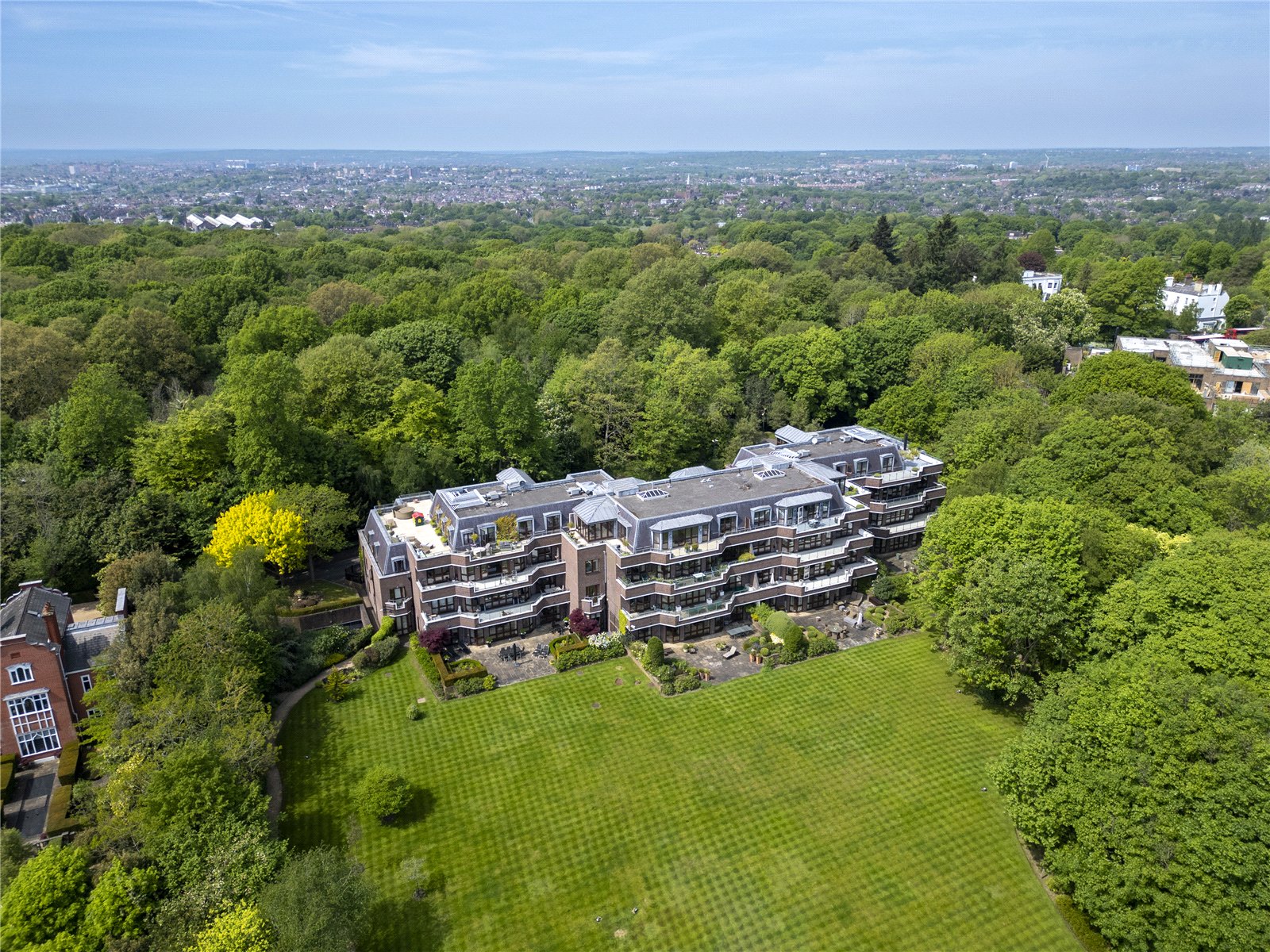 commanding position which overlooks 3.75 acres of landscaped communal grounds, Hampstead Heath and beyond towards the West End and The City of London. Communal areas, security services and leisure facilities are of the highest standards. The property situated just off Spaniards Road, which runs from Hampstead Village via Heath Street to the south west, to Hampstead Lane and Highgate Village to the north, past the historic Spaniards Inn. The important Kenwood House is nearby, as are both Hampstead and Highgate golf courses