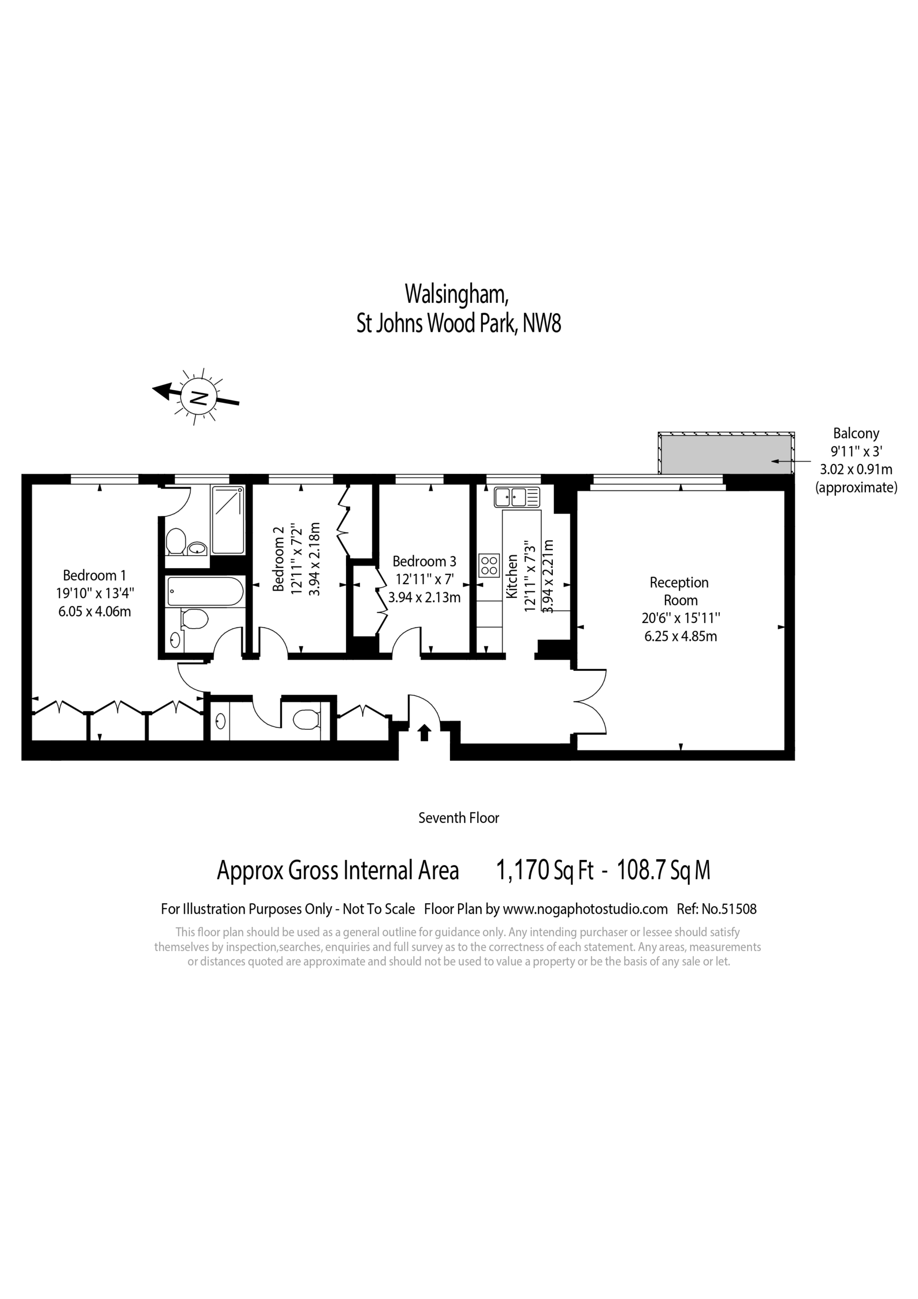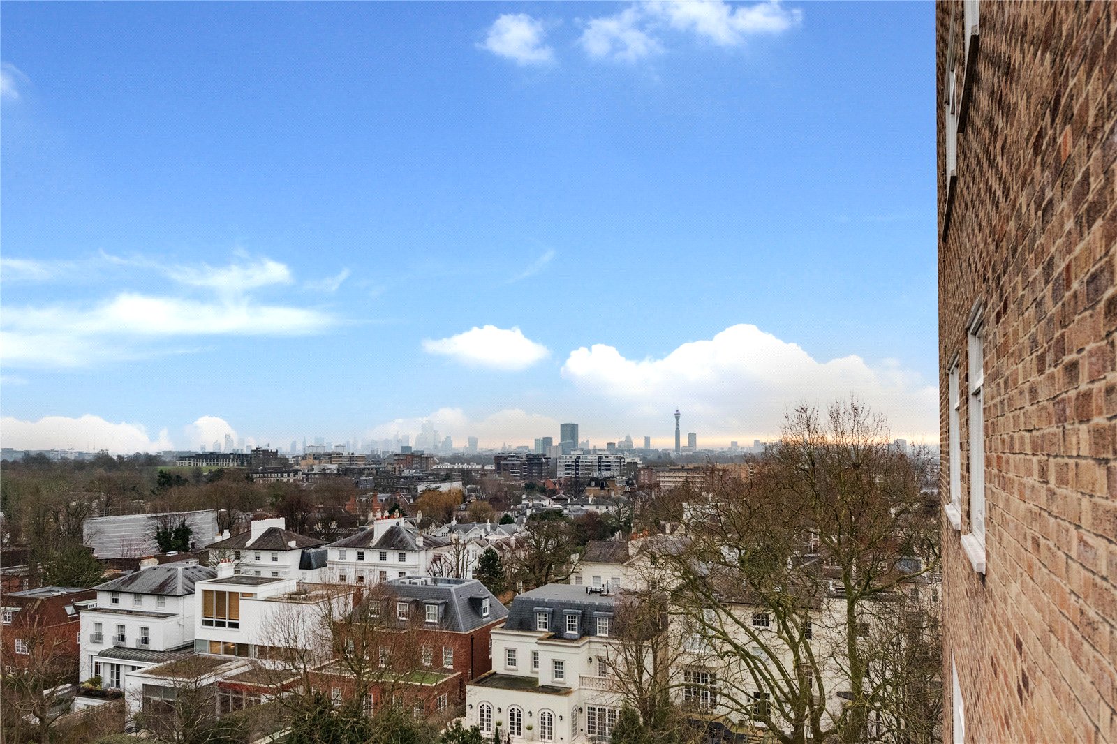 A wonderfully bright 3 bedroom apartment located on the 7th floor with far reaching easterly views across Primrose Hill, the City and beyond. The apartment is offered in very good condition throughout, arranged over 1,170sqft / 108.7sqm and features a large reception room with solid wood strip flooring and access to an east facing balcony.