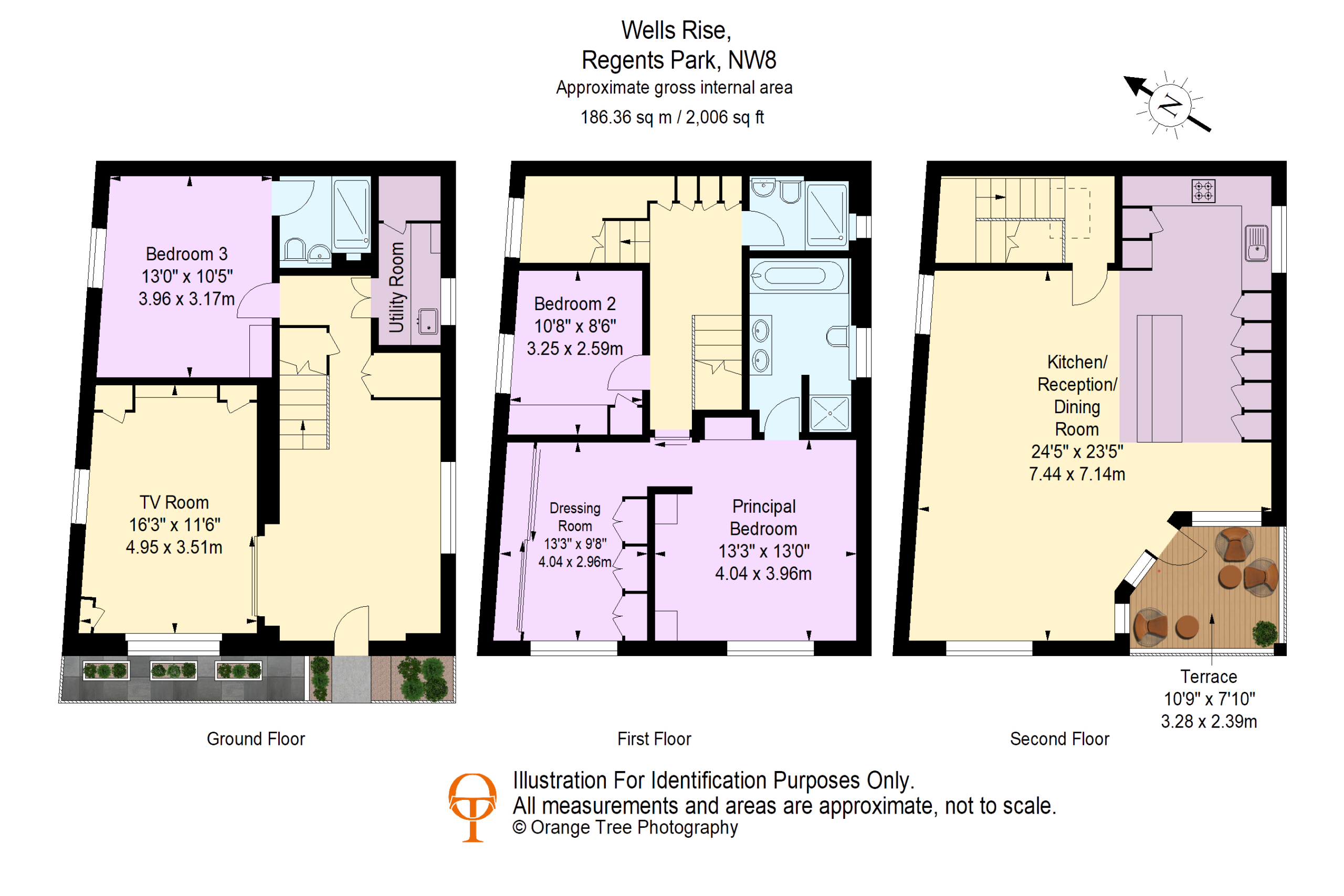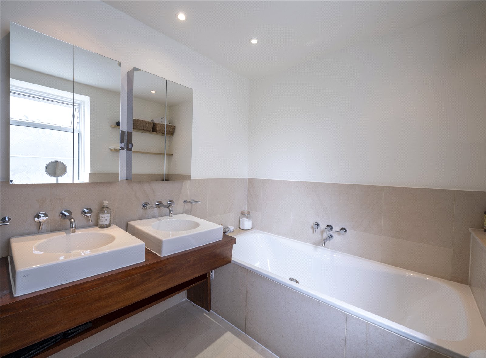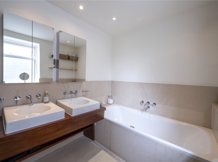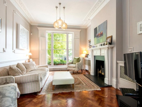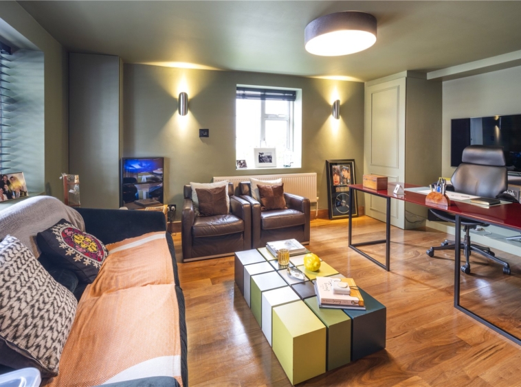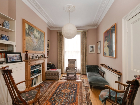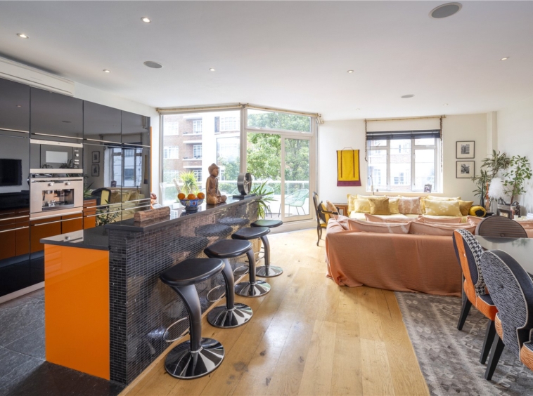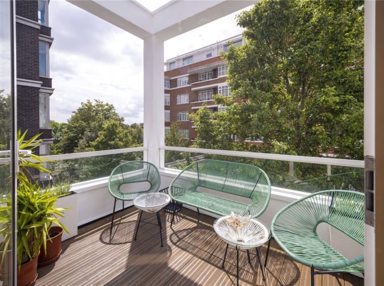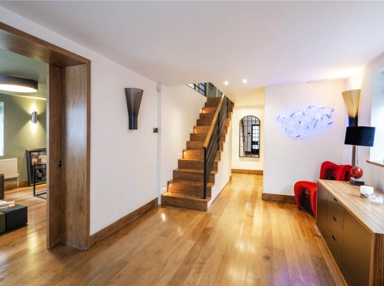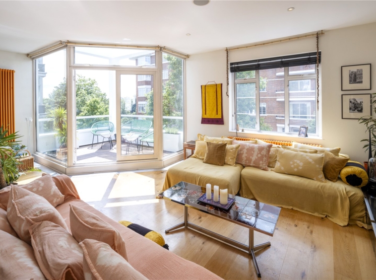The reception room has full-height glazing and direct access to a rare, private terrace which extends seamlessly from the open-plan reception and kitchen, creating an effortless indoor-outdoor flow — perfect for long summer evenings with friends and family